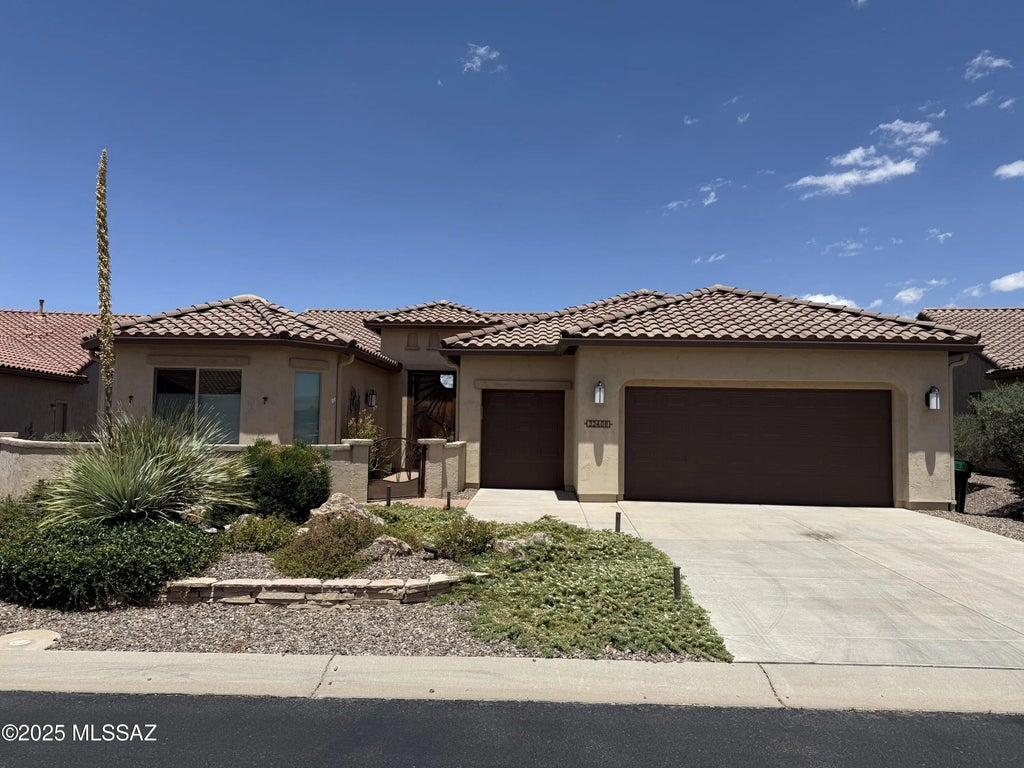 Arrive to this ever popular Cortez Model and immediately you will appreciate the attention to detail in which this home was designed. Fine living is the standard, from the hand distressed/scraped hardwood flooring throughout to the gourmet kitchen outfitted with GE Profile appliances, quartz countertops and high end cabinets w/semi overlay doors & soft close drawers. Stunning views of the desert & golf course to the backdrop of the Tortolita Mountains. Some of the other top line features include expanded outdoor covered patio w/sunscreens, built-in media center, expanded master closet, full laundry room cabinets, Pelican water treatment system, bay windows, exterior LED coach lights, 4' garage extension and much more. Located in the 55 plus gated community of SaddleBrooke Ranch.