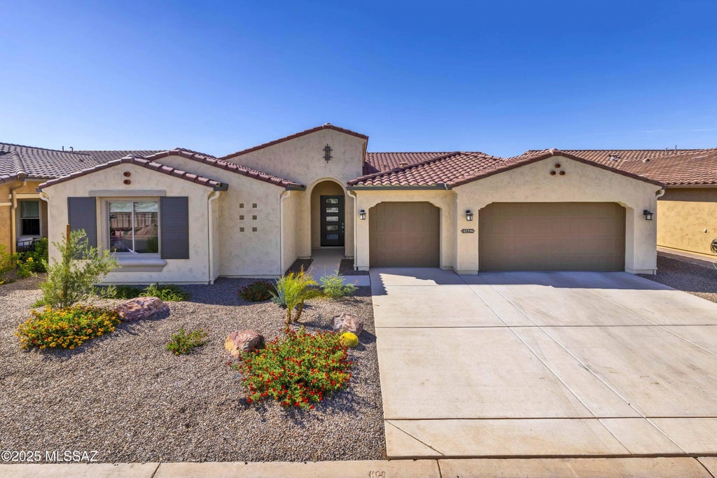 A highly Upgraded and JUST 1-YEAR-OLD 2758 Sq. Ft. Solstice Exterior Design A model situated dramatically on a .21 Acre lot with magnificent Desert Views! - and for ready for you to enjoy the sunsets from your back covered patio. Structurally this beautiful home has the following; 2-Bedroom En-Suites; 2 Full Baths; Powder Room; Great Room with 16' optional Glass Pocket Door; Dining Room with Alcove; Entertainer's Kitchen Island; Large Walk-In Pantry; Media Alcove in Great Room; Oversized Den; Luxurious Master Bath 42'' x 60'' Soaking Tub & 42'' x 60'' Shower and Built-in Seat; Generous Walk-in Closet in Master Suite; Walk-in Closet in Bedroom 2 Suite; Owner's Entry Valet w/Cabinets ; Walk Up :''Wet'' Bar; Large Laundry Room ; Deep 3-Car Garage; 493 sq. ft. of Covered Outdoor LivingSpace; 9', 10' & 11' Ceiling Heights; Group 3 quartz at Kitchen Island, Wet Bar, Butler's Pantry, and Valet; "High-end" Cabinets throughout the home, and "soft-close" hinges everywhere, and so much more! The back is fully fenced with a 5' high iron fence that allows you to still enjoy the views with a glass of wine from your soft patio chair! Additional "after-market upgrades" include: "Cool -Decking" on both front entry and back covered patio; epoxied garage floor; water softener; "high-end" window coverings through-out the home; Brand-new Washer, Dryer, and "high-end" refrigerator convey with home; up-graded dining room and kitchen lighting; front landscaping w/irrigation and irrigation for backyard "stubbed-out"; rear yard completely fenced (~200 ft.); and again much-much more! Come take a look-see at this incredible home!