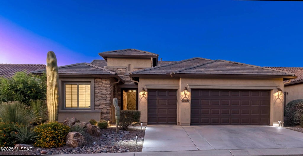 Discover refined living in this impeccably maintained Fresco model home in SaddleBrooke Ranch's active adult community. The chef's kitchen boasts granite counters, SS appliances, and upgraded cabinetry. Enjoy exposed beams and oversized windows in the Great Room, along with a dining area and a versatile den. Extras include a spacious laundry room and a Golf Cart Garage. This thoughtfully designed home offers a perfect blend of elegance and practicality. The open-concept layout enhances natural light and flow, creating a welcoming space for entertaining or quiet evenings. Outside, the Arroyo-facing yard offers privacy & a serene desert backdrop. Schedule Your Showing Today!