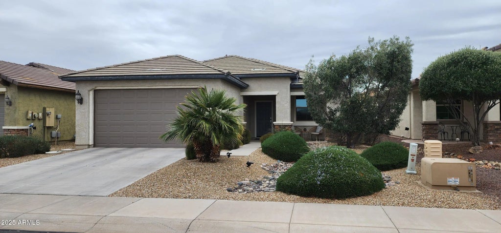 SUMMER AND EARLY FALL SPECIAL(END OF SEPTEMBER)..$1500 PER MONTH! Welcome to this nice open concept home with a den is located in Sun City Festival a beautiful 55+ community. The fully stocked kitchen features Stainless Steel appliances, Granite countertops, maple cabinets with pull out drawers, center Island w/seating and eaten in area between family room and kitchen. Built in Office Station with upper cabinets. Owners Suite has a Bay Window and double doors leading into Private Bath with Dual Sinks, Vanity, step in shower and Walk in Closet. Den has pull out couch. Relax in the covered patio with table and chairs and BBQ. Come enjoy the resort style amenities with beautiful pools to cool off in the summer and heated for colder months. Enjoy the beautiful Arizona weather in the fall and early winter. This home is available April to December. April rate is $3300.00. May to October $1800 per month and November to December $2500.00 per month.