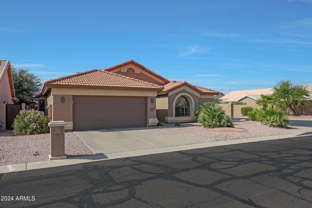 Welcome to PebbleCreek! This stunning corner-lot home offers an array of luxurious upgrades designed for your comfort and enjoyment. The highly sought-after Heritage model features an open floor plan and vaulted ceilings, creating a spacious and inviting atmosphere. With over $90,000 in upgrades, including a beautifully remodeled kitchen with custom cabinetry, granite countertops, and new appliances, this home is truly move-in ready. The master suite and bath have been fully renovated for your relaxation, and additional upgrades include a whole-house water filtration system, new A/C unit, water heater, and roof underlay. (MORE) Newly painted exterior! The versatile den provides extra space for a home office or media room, and the covered patio, accessible from both the living area and the master retreat, is perfect for outdoor entertaining. Experience resort-style living in the highly desirable PebbleCreek active adult community, where every day feels like a vacation!