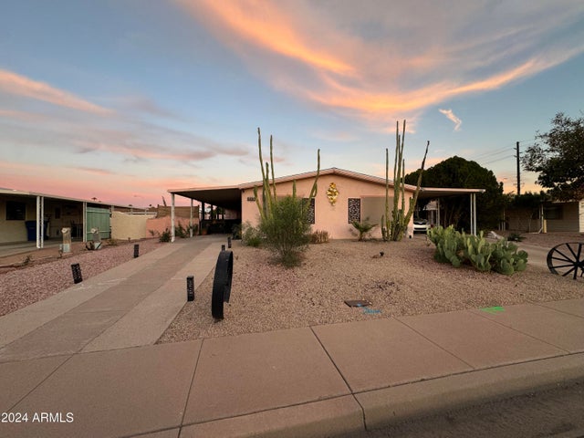 Escape to tranquility in this charming Velda Rose Garden home. This spacious 3 bed 2 bath home offers over 1680+ sqft inside a storage workshop, 2 car ports one that leads to the RV gated backyard perfect for outdoor enthusiasts. Bring your pets as this home is fully fenced. Lots of vegetation in the backyard with an Orange and an up and coming Lemon tree. Recent upgrades, including a new water heater, microwave and roof that was replaced in 12/22 to ensure worry-free living. Own the land you reside on with a low annual HOA fee of $600. Don't miss this opportunity to own a piece of paradise in the heart of Mesa.